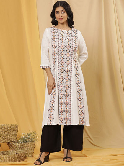 W Ethnic Motifs Embroidered Regular Thread Work Kurta with Trousers