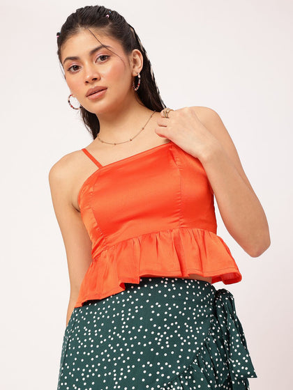 DressBerry Women Orange Ribbed Shirt Style Top