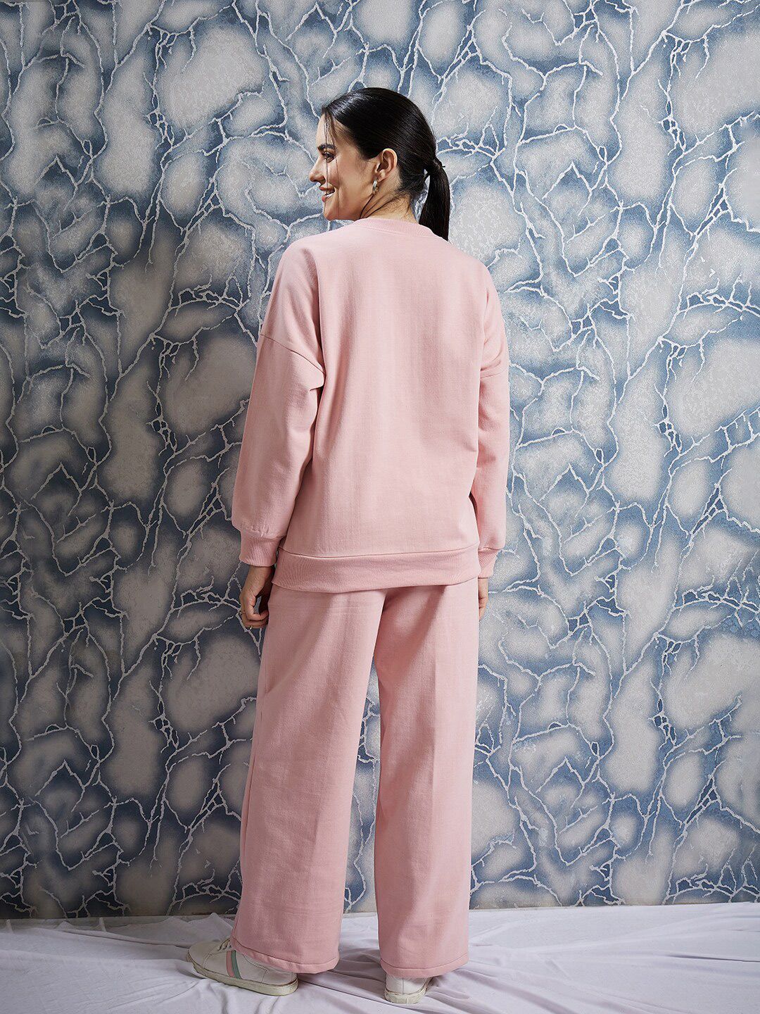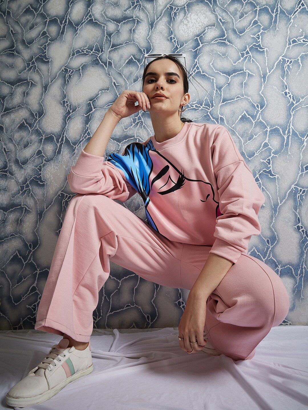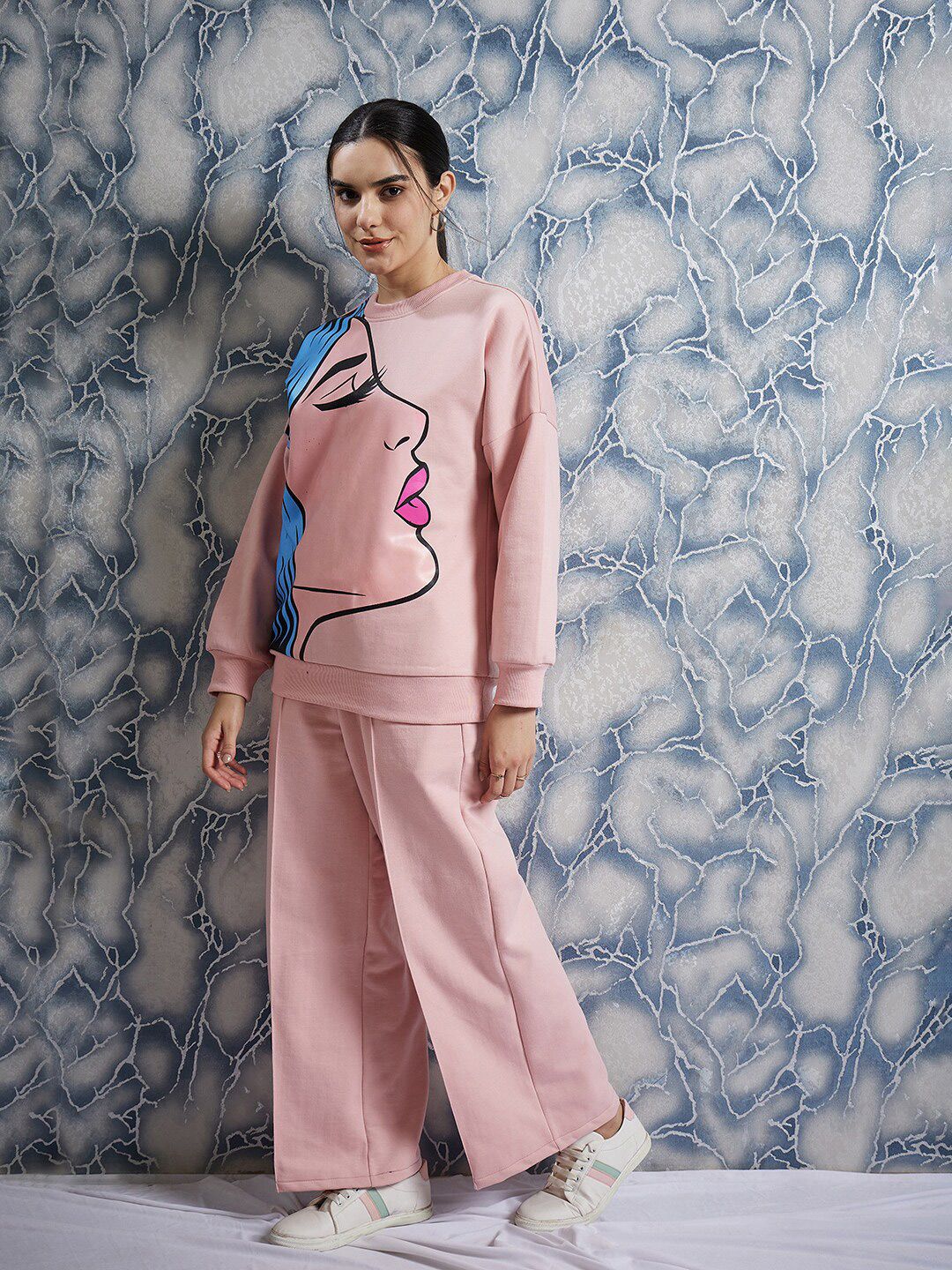 Athena Peach Graphic Printed Drop Shoulder Sleeves Fleece Pullover