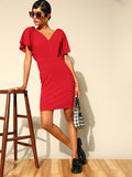 Athena Women Gorgeous Red Solid New Neckline Dress