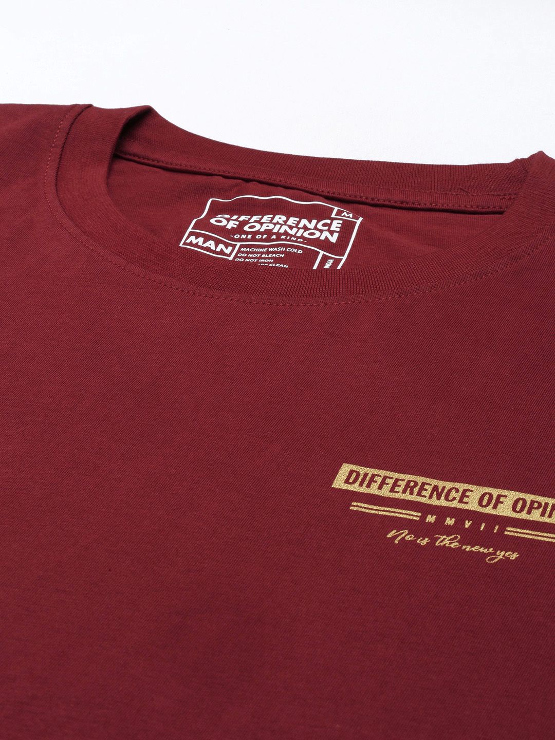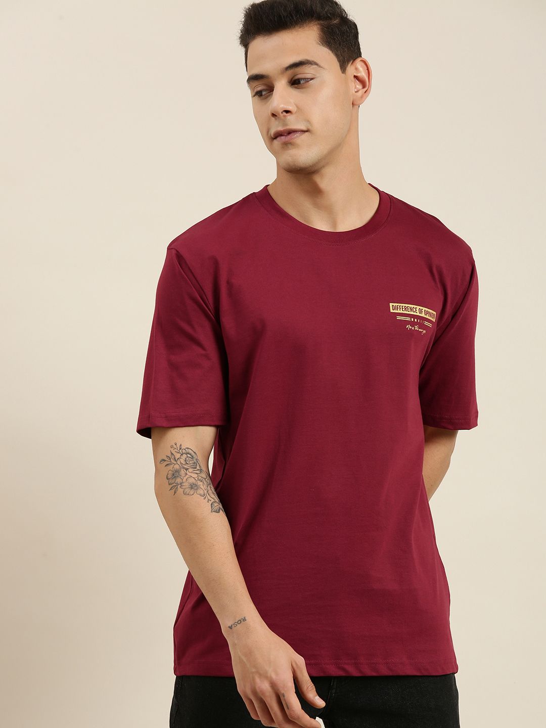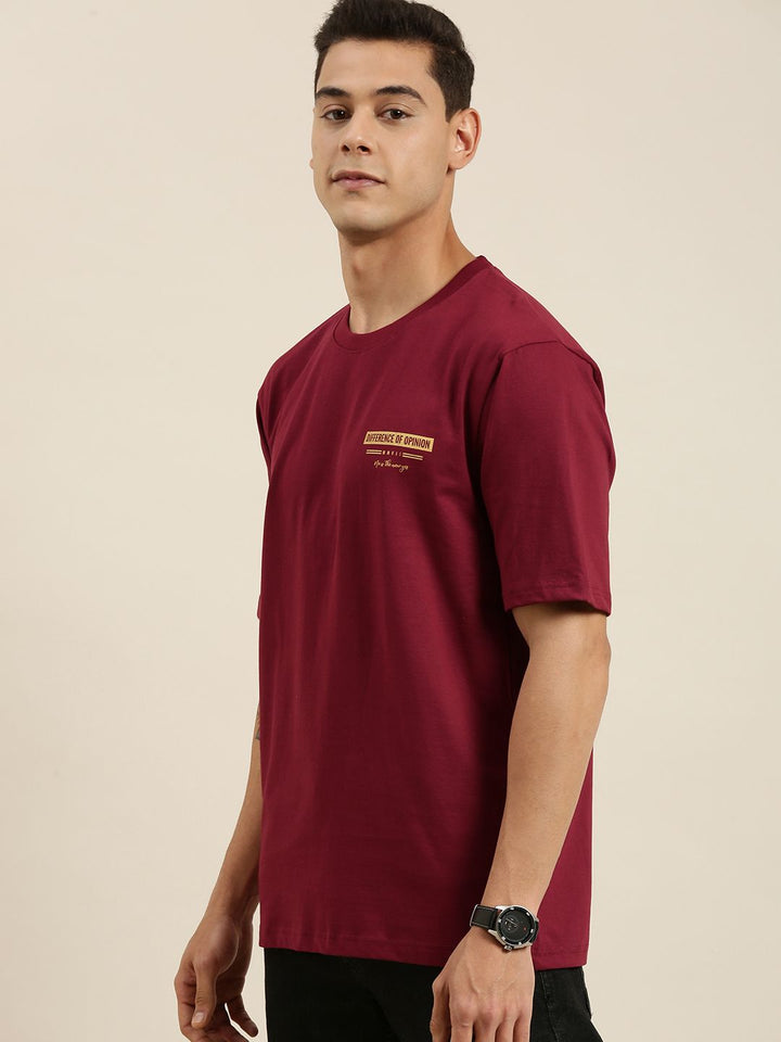 Difference of Opinion Men Maroon & Yellow Cotton Printed Drop-Shoulder Oversized T-shirt
