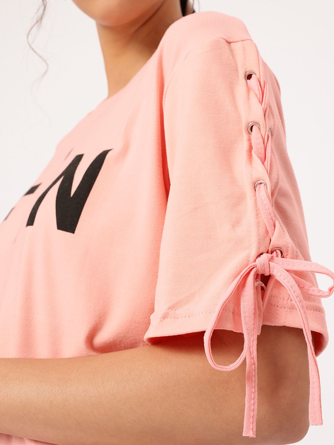 DressBerry Tik Talk Printed Lace-Up Sleeves T-shirt