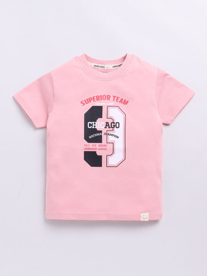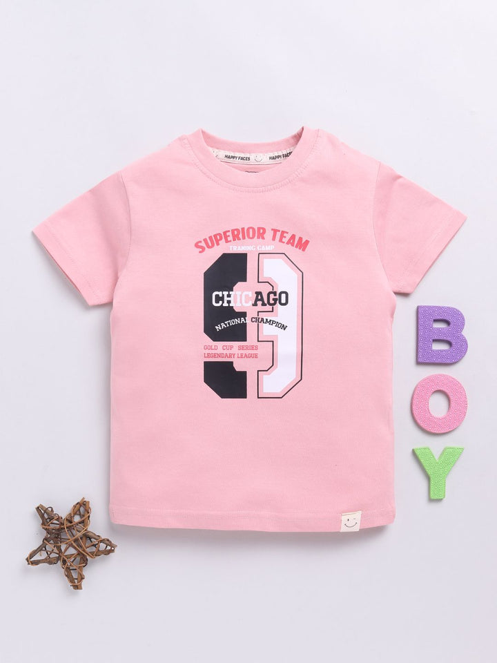 Happy Faces Boys Pure Cotton Typography Printed T-shirt