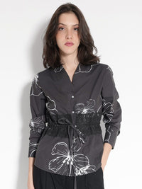 RAREISM Floral Printed Three-Quarter Sleeves V-Neck Cotton Top