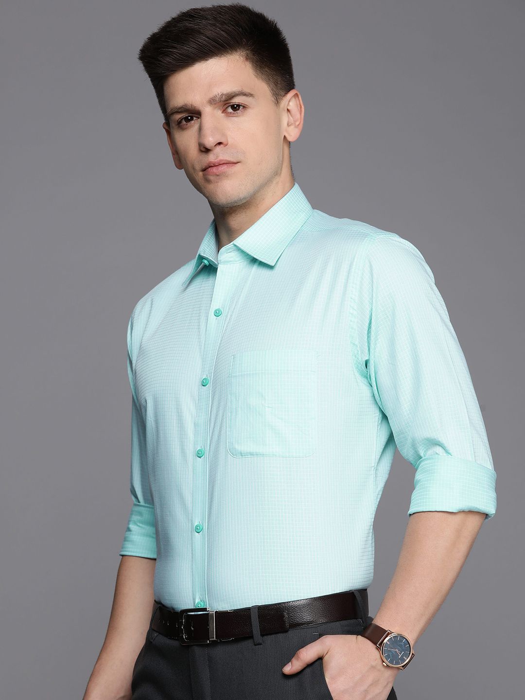 Raymond Men Slim Fit Micro Checks Pure Cotton Formal Shirt