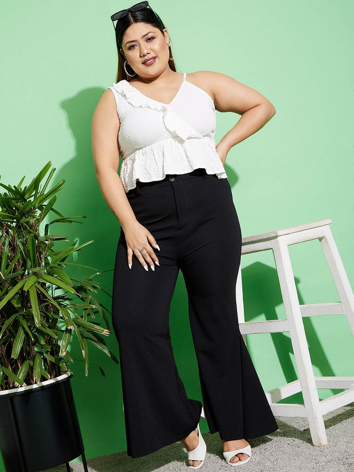 SASSAFRAS Curve Plus Size Women High-Rise Black Flared Trousers