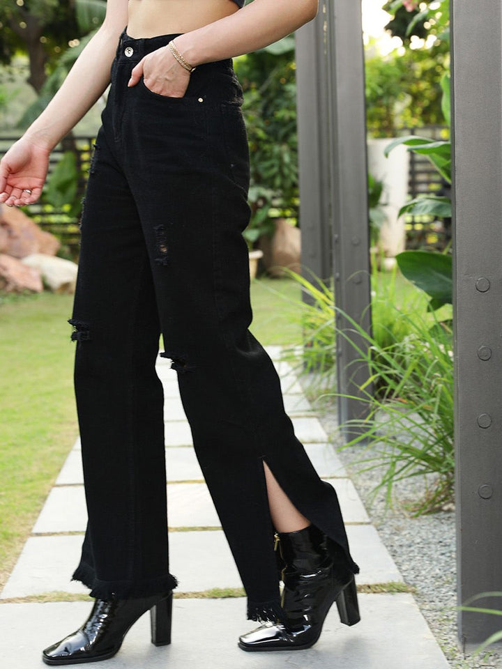 STREET 9 Women Black Flared High-Rise Mildly Distressed Jeans