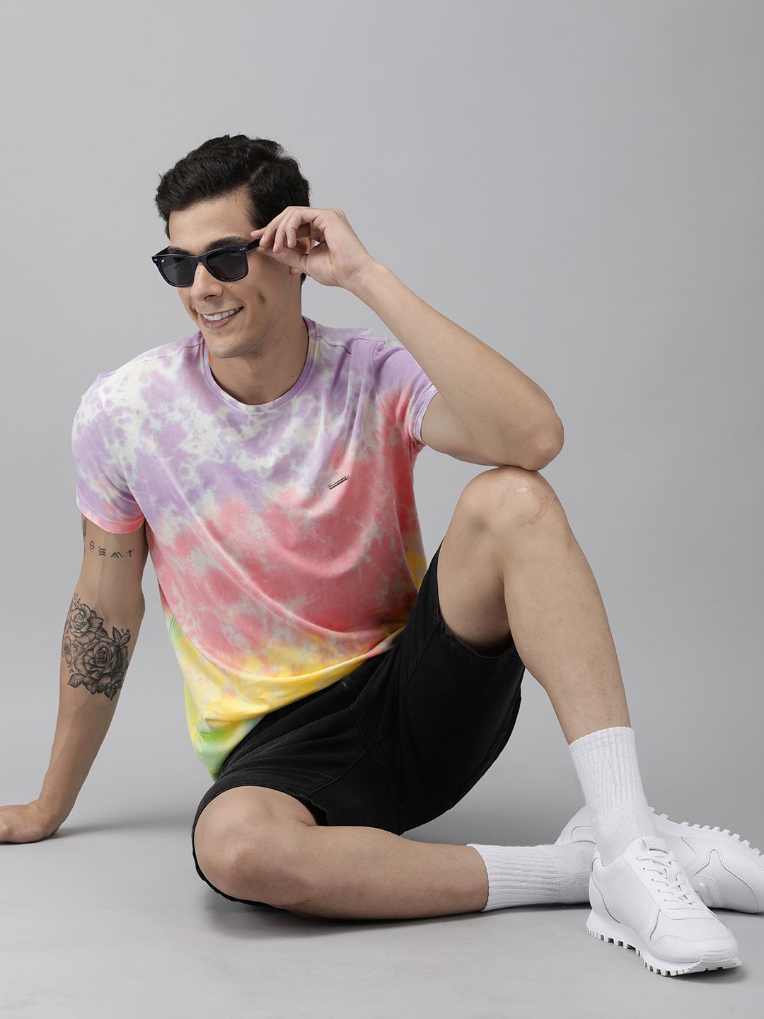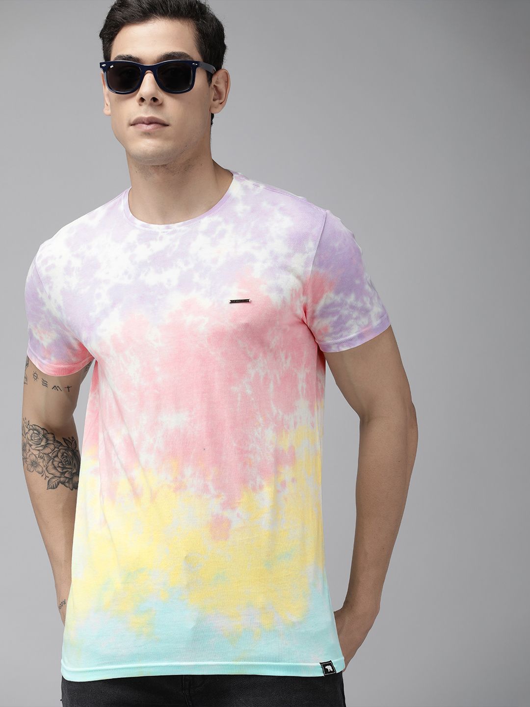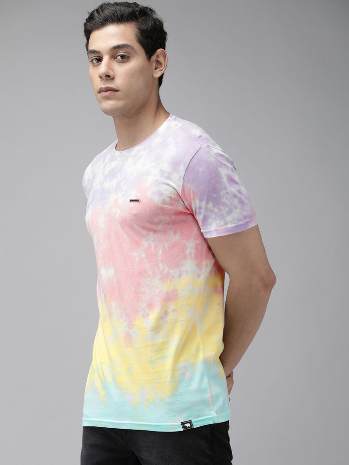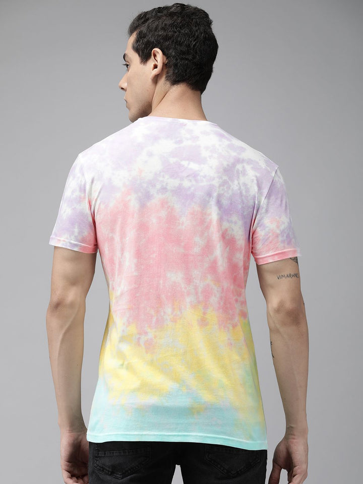 THE BEAR HOUSE Men Pink & Yellow Tie and Dye Pure Cotton Slim Fit T-shirt